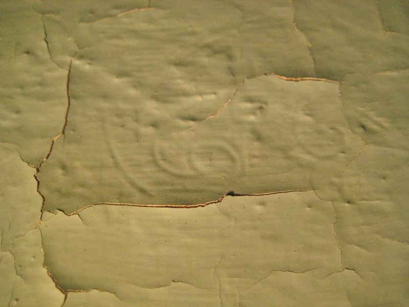 Upstairs, in a bathroom in the servant\’s quarters, many layers of paint are visible. The light blue, which is the top layer, may have been added by the family in the 1930\’s or 40\’s, or it could date as late as the restoration of the house, in the 1970\’s.