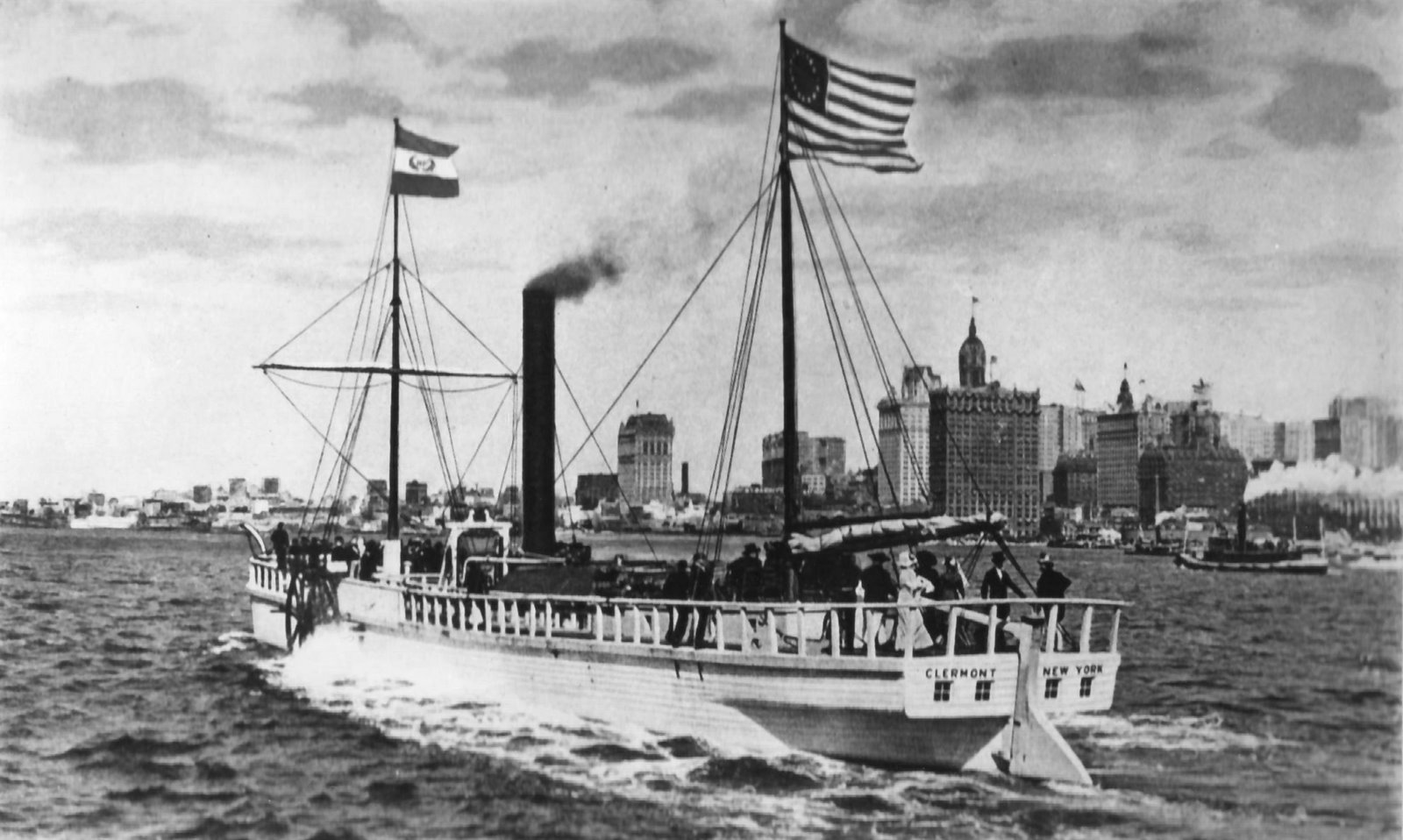 The boat, full of costumed passengers, docked within site of Clermont\’s mansion and spent the afternoon being toured by the public. I can only imagine that John Henry\’s wife Alice, toting an infant Honoria, was among those to climb aboard and investigate the boat.