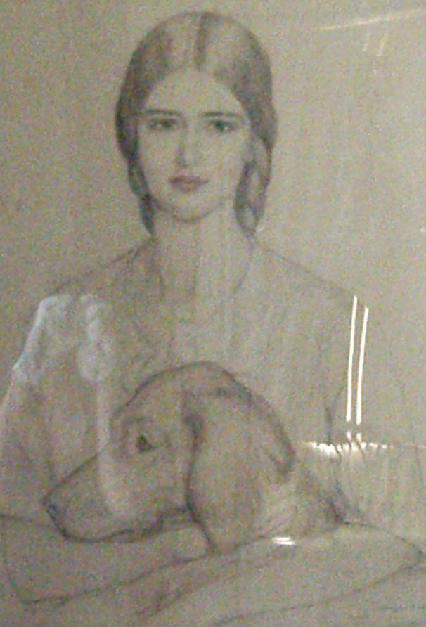 Alice\’s younger daughter Janet appears to have followed in her mother\’s footsteps as a dog lover. She was a known supporter of the still-young Humane Society and appears to have had some interest in the earliest days of the Seeing Eye, the first organization to train guide dogs for the blind. Amongst her belongings we found a a program for a dinner in memory of Buddy, one of the first guide dogs. She was also portrayed in art closely entwined with one of her dogs as a teenager in Italy.