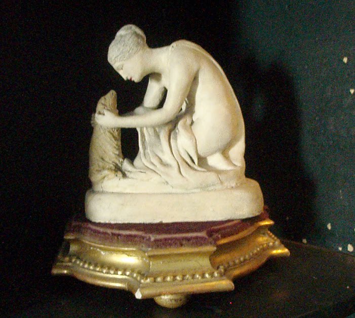One of my favorite decorative, dog-themed artifacts in the mansion is a figurine sculpted by Alice, which depicts a kneeling woman looking into a small dog\’s face. The intimacy of this gesture is touchingly familiar to any of us who have ever taken a moment to subject our dogs to \”kisses.\”
