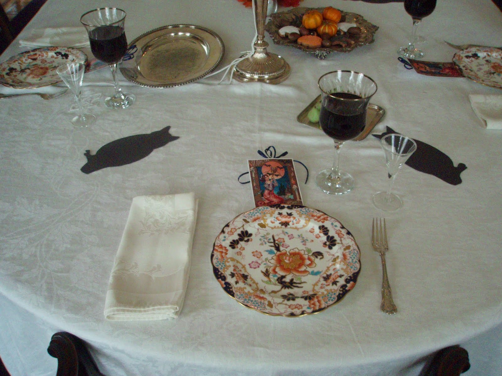 When I started decorating Clermont for Halloween, it seemed to me that historic party decoration was all about paper. I\’ve already discussed silhouettes in this blog, paper decorations also included Chinese paper lanterns, printed place cards, die-cut decorations (pictured at left from an eBay auction), and copious usage of crepe paper.
