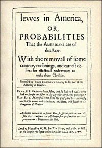 But for all that, Nicholas had inadvertently allied himself with a different stream of speculation. There was a popular theory making the rounds in America that the Native Americans were actually descendants of the Jews. This theory – which lived long enough for Joesph Smith to pick it up in 1830 – was popularized by a missionary named Thomas Thorowgood in a pamphlet entitled Jews in America. In the introduction to the second edition of the pamphlet, published in 1660, some of Thorowgood\’s followers make a direct connection between their missionary work and Nicholas\’ prediction.