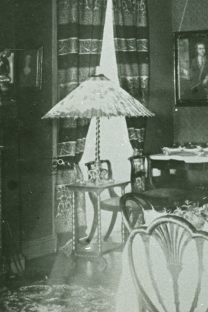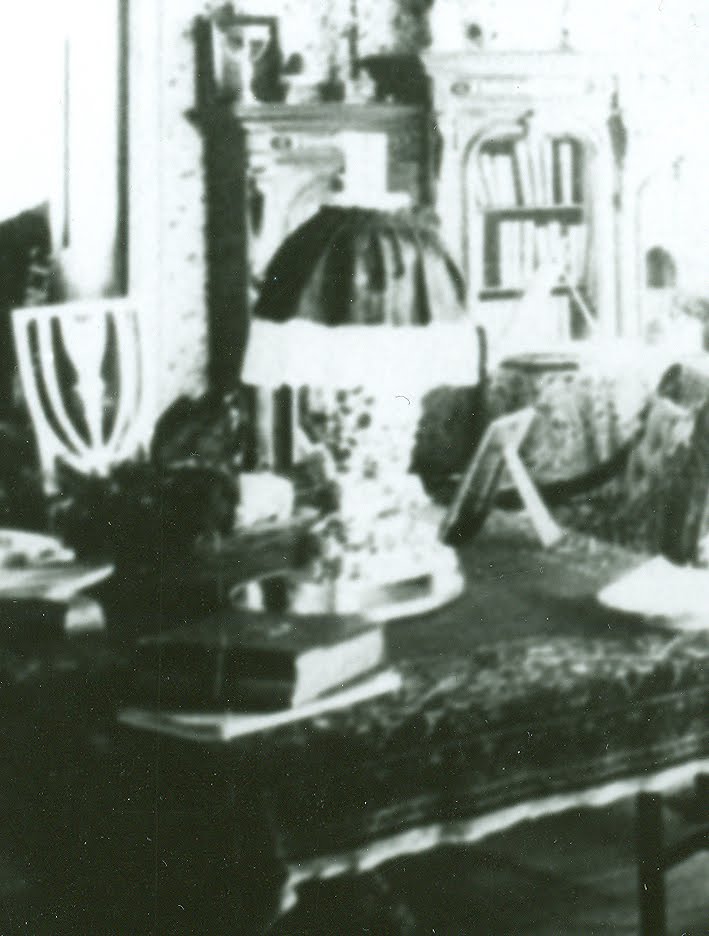 Gas lighting was available to many city-dwellers, and it appears as though the Livingstons may have kept a resovoir themselves. Family lore describes a gas chandelier over the billiards table in the library (both of which have since been removed) and photographic evidence from another 1880s image shows what could be a table lamp in the dining room, plugged into a gas fixture on the wall.