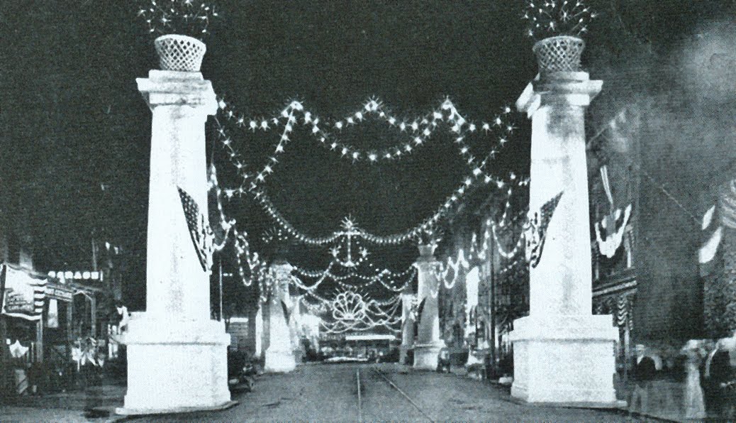 We modern electricity-users can get a little romantic about our candle-light. But the fact is that electric lighting generated mass excitement for reason at the turn of the century. Its practical, generally safe, and infinitely brighter capabilities revolutionized the way we experience the night, and people gravitated to electricity spectacles like the \”Illuminations\” of the 1909 Steamboat Bicentennial cellebration (pictured at right in Poughkeepsie).