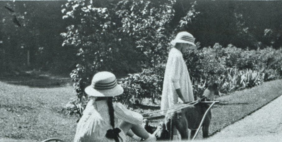 rom its configuration, this little cart appears to be made specifically for dogs, and with the reins in her hands, Janet looks quite adept at driving her dog. Since they owned a special cart for the purpose and appear to have put some time into training Wagon to pull it, it seems that this was also a common afternoon passtime for the Livingston girls.