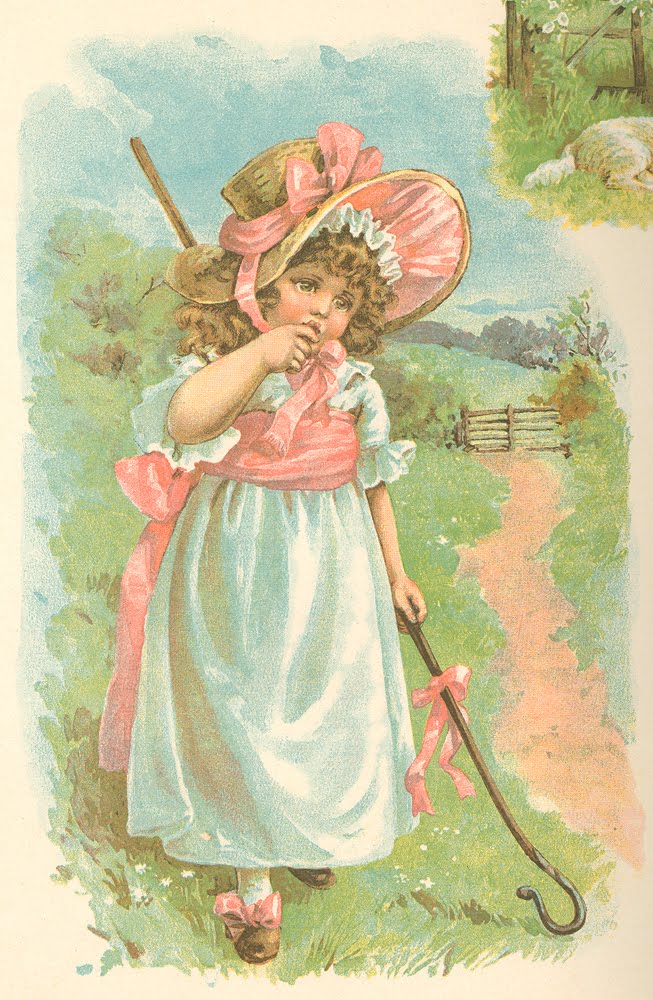 (For instance compare the more formal pinched waist in the 1865 illustration from Alice\’s Adventures in Wonderland at left with the relaxed, Colonial Revival costume in the illustration from the Scrap Book at right.) Perhaps a later, updated publication of an earlier book.