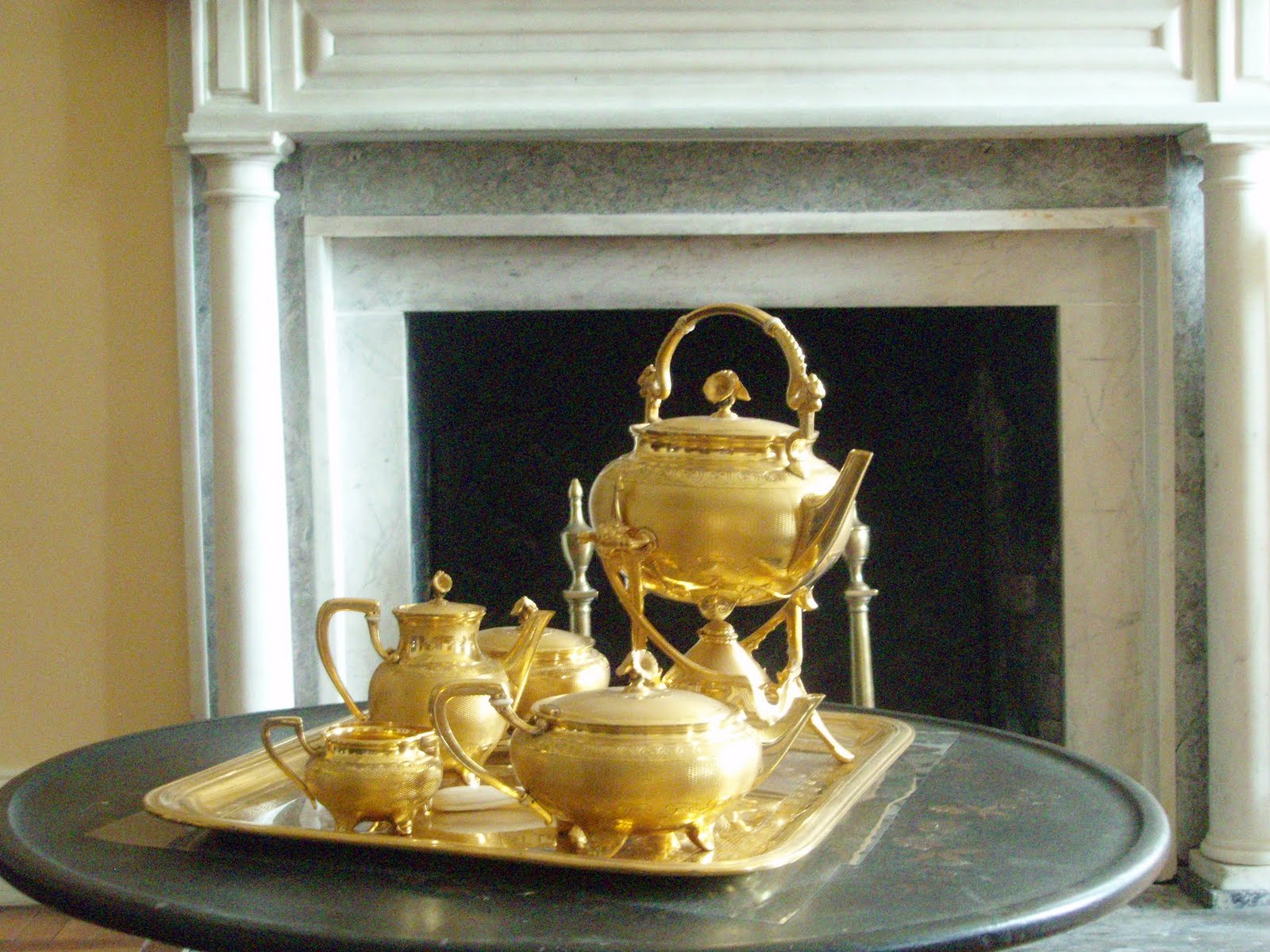 Instead, ormolu (or gold plated over brass) was used. The shining tea set that resides in Clermont\’s drawing room is a great example of 19th century ormolu pieces.