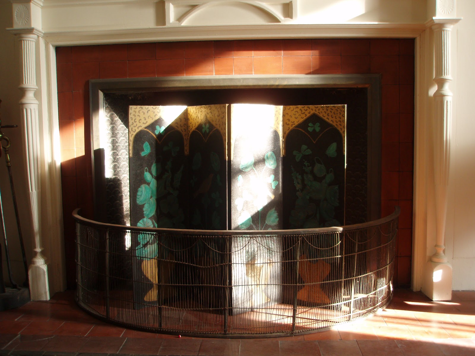 I also love to point out the exotic little screen that Alice kept in her fireplace when it was not in use. Broad decorative screens like this had been commonly used since the house\’s building in the 18th century. They were often used in the summer when the fireplace was cleaned and put to bed for the warm months. I like this one because of the ogee arches and strong contrast between the black and gold. It has a flair of the exotic that was popular are the turn of the century.