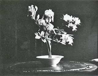 Alice Livingston, with her artistic eye, developed an interest in Japan at least as early as her mid thirties, and her step daughter Katherine (who was about the same age) even traveled in Japan with her father John Henry in the 1890s. At right is the title page of a Japanese floral arrangement book in Clermont\’s collections. Alice attempted the techniques described within, and she even photographed one of her attempts with irises and honey suckle (pictured below).