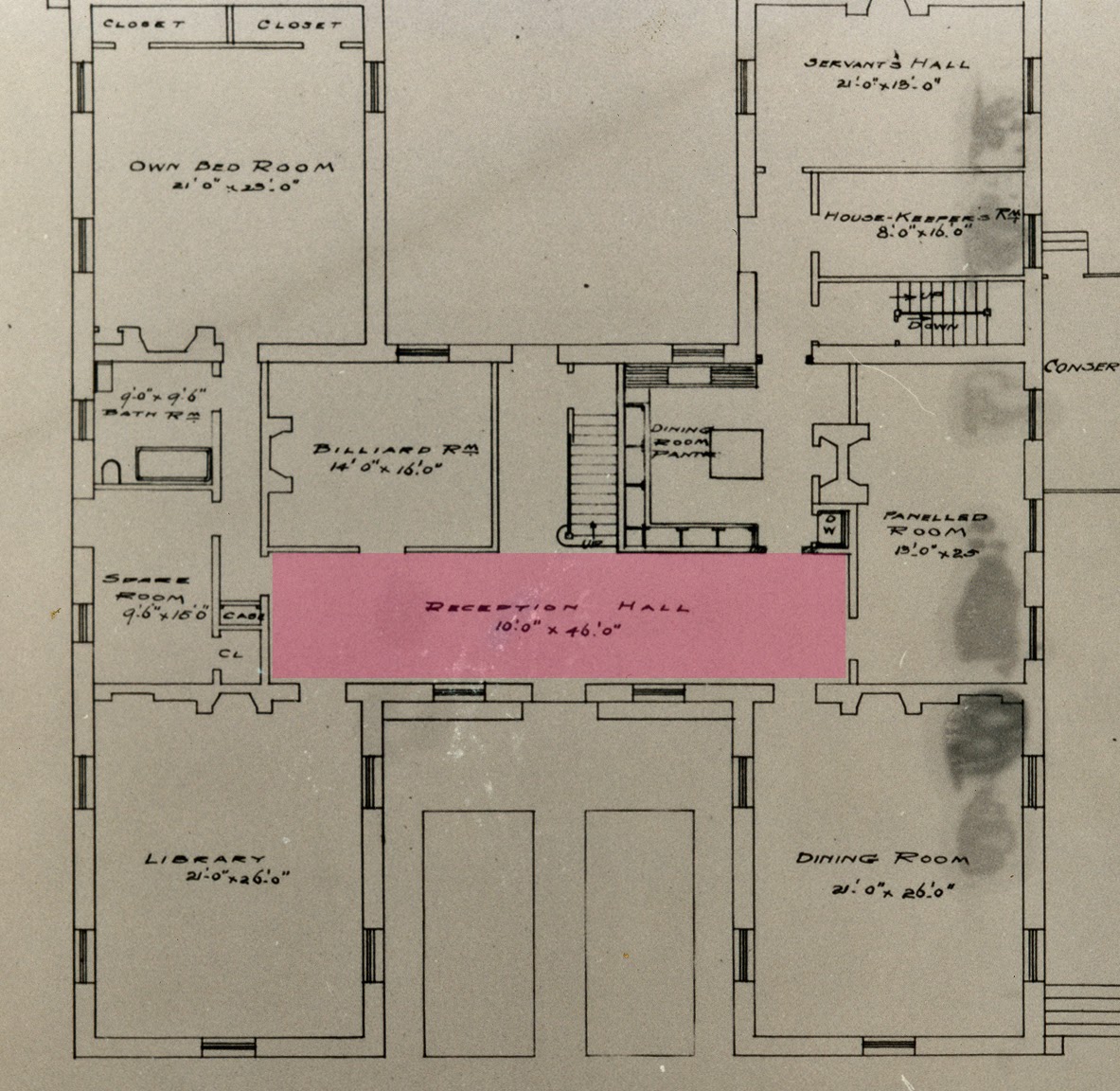 What would have been more surprising to visitors however, would have been the broad gallery or receiving hall that stretched away to the right and left as you stepped in the front door.