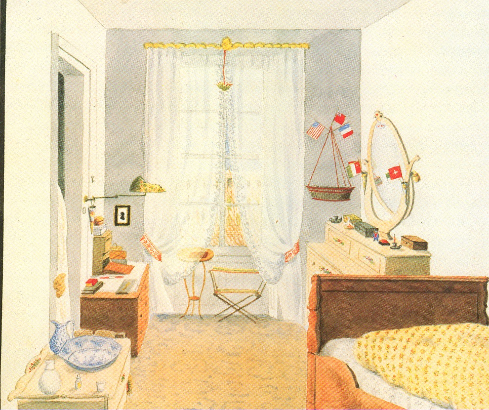 The rooms were nicely outfitted with grass \”matting\” on the floors, fine dressing dressing tables, wash stands for bathing, and some very good feather beds. It may have looked a little like the image at right, a Brooklyn bedroom circa 1850-67 (from the Museum of Fine Arts, Boston). Note the little wash stand at left with a wash set for bathing neatly organized on top of it. This pairing of furniture and china, essential for daily bathing, was listed in nearly every bedroom (including one of the servants\’ rooms) in the house. The widowed Mrs. Edward Livingston also took two more with her when she left. The wash stands were considered a self-care station separate from dressing tables, which appear in alongside them in each of the family rooms.