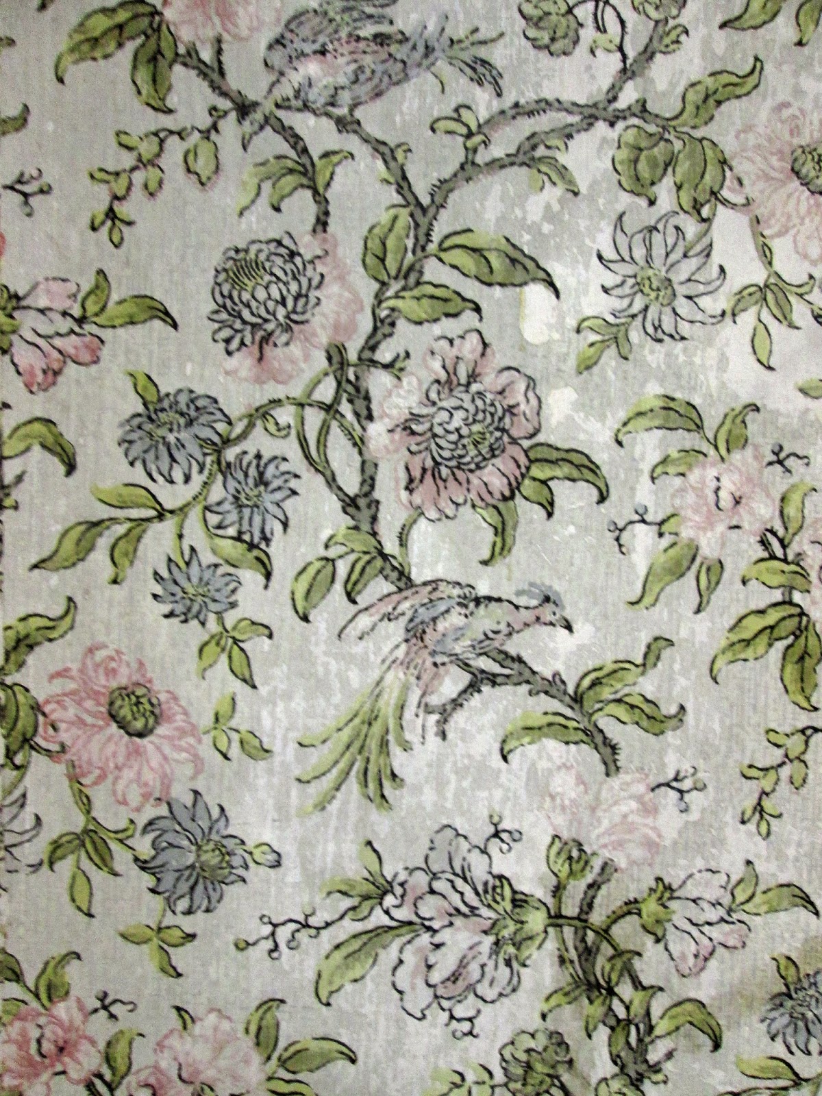 The wallpaper in the east room (shown at left) became all the more charming when I discovered that violets were at one time considered the flower of love: