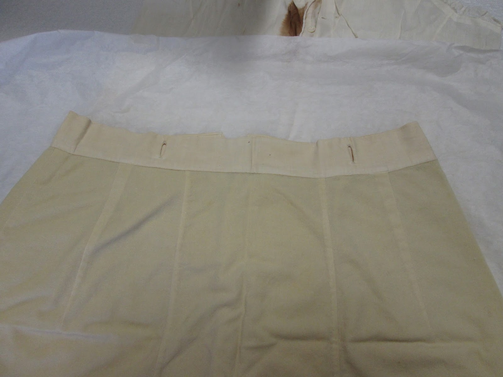 The petticoats are cream wool flannel, surprisingly soft and light if you haven\’t handled a lot of historic wool products. Wool could be woven in many weights and textures–a lot of which have been abandoned today.