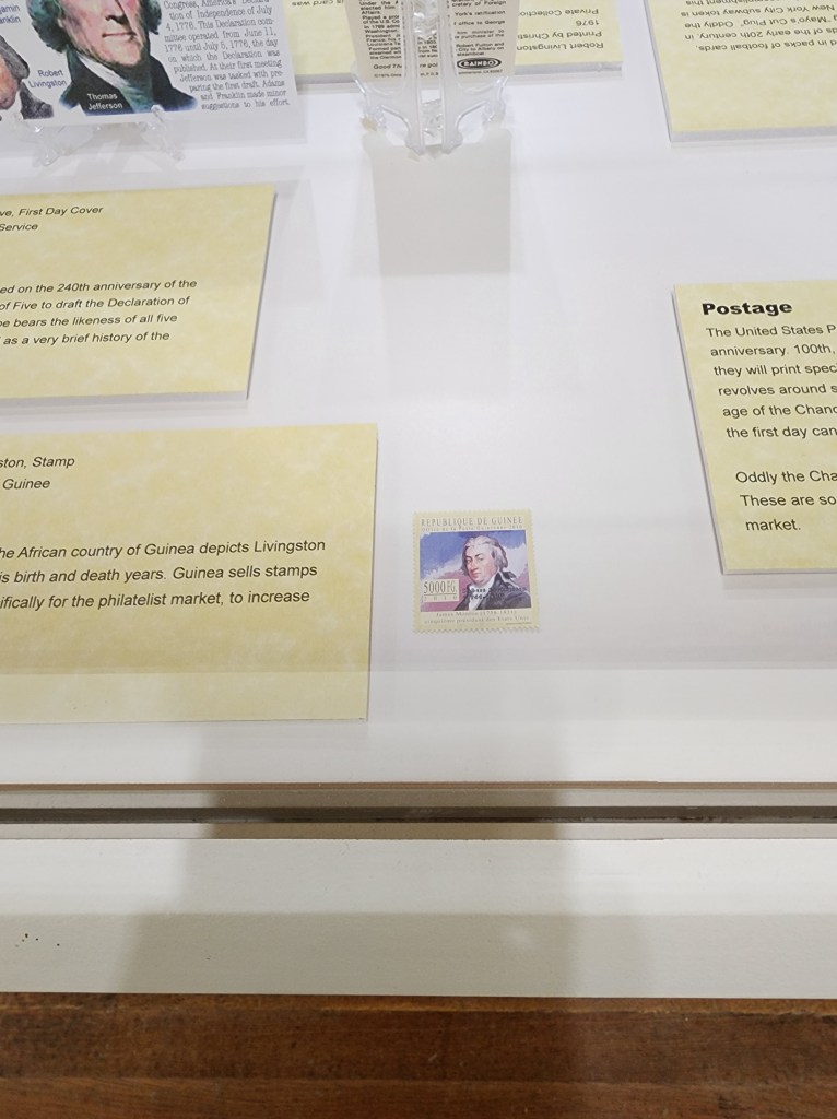 It is also common to see Livingston on trading cards and stamps. Periodically trading card companies decide to include a bit of history in their pack by throwing in cards of past figures. Sometimes these cards are insets in packs of cards and sometimes they are in loafs of bread but either way they get a bit of history into the hands of people who might otherwise never hear of people like Livingston. Livingston also shows up on stamps fairly frequently. Whenever there is an anniversary, the USPS seems to throw his face on a stamp.