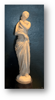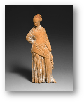 Despite the fact that Alice’s work was mistitled in the publication, the article itself provides valuable insights into the reception of Alice’s work among potential patrons and collectors in the art world in the late 1920s: “The works of this artist were acquired by connoisseurs from Europe and America and one of the officials of the Uffizi Gallery in Florence is of the opinion that the works of Alice Livingston could be compared to the Tanagra” (Revue, 16). Although the details of these acquisitions are not provided, that her work was acquired at all indicates a positive reception among a varied group of patrons, collectors, museum officials, and potential buyers during this time. Additionally, it is telling that officials from institutions as renowned as the Uffizi saw fit to stop and discuss her sculptures. The “Tanagra,” in which her pieces are compared, refers to a specific type of terracotta figurine which gained popularity in the latter quarter of the fourth century B.C.E. These statuettes were “appreciated for their naturalistic features, preserved pigments, variety, and charm…[and were] based on an intimate examination of the personal world of mortal women and children…” (“Tanagra Figurines,” in Heilbrunn Timeline of Art History, Metropolitan Museum of Art). Like the Tanagra, Alice’s work depicts delicately posed female figures, often hand painted and classically draped, as well as intimate moments between women and children. It is thanks to this article, and the unnamed official from the Uffizi that we are able to consider the similarities of visuality and subject matter between Alice’s work and this form of ancient era collectable sculpture. And, overall, this article provides valuable insight into the exhibition history and public reception of Alice’s work in the larger art world at the end of the 1928, a mere three years after she taught herself to sculpt.