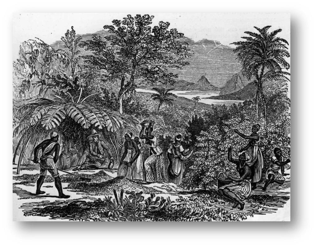 Coffee made its way into 18th century colonial America through the transatlantic trade system. The Dutch began circulating arabica coffee beans from Ethiopia as early as 1650, which initiated the incorporation of coffee within 17th century plantation systems. Importantly, coffee was cultivated by enslaved Africans, primarily from west Africa, by colonial powers such as the Dutch and the British, in colonies from Suriname to Jamaica. The labor of these enslaved peoples forced to work in these colonies is what enabled coffee to become a staple commodity in transatlantic trade and in colonial America.